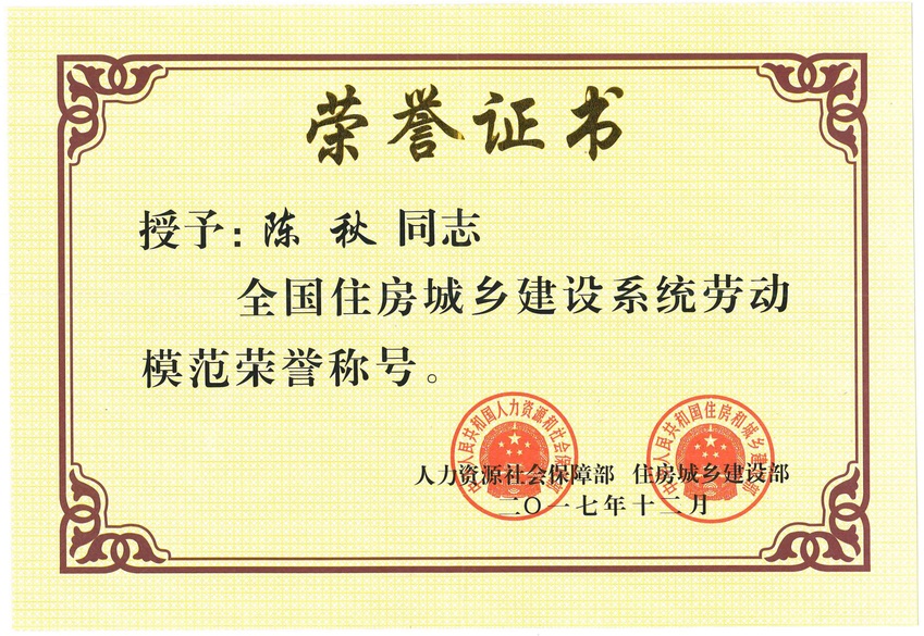熱烈祝賀我公司陳秋同志榮獲2017年度“全國住房城鄉(xiāng)建設系統(tǒng)勞動模范”榮譽稱號。一個勞模是一面旗幟,是推動企業(yè)發(fā)展和前進的先行者。公司號召全體員工以勞模為榜樣,攜手奮力砥礪前行,為企業(yè)實現(xiàn)超越發(fā)展貢獻聰明才智。