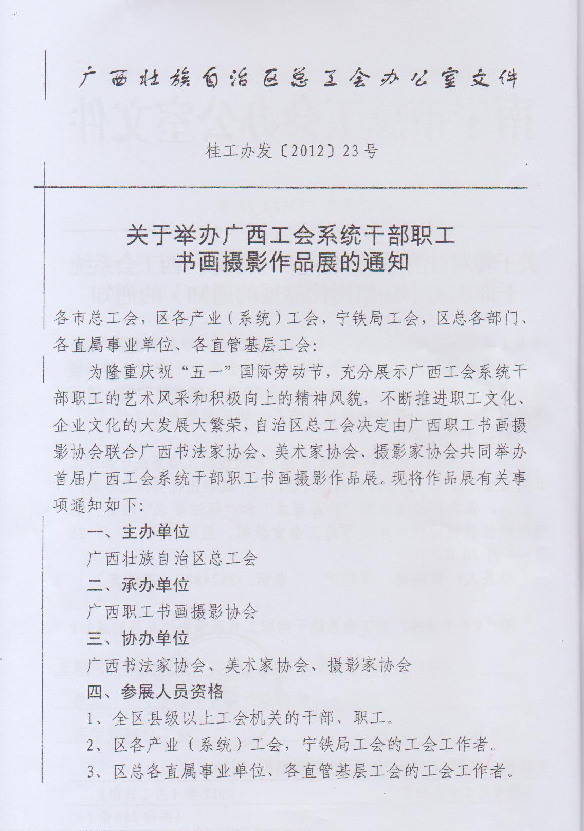 關(guān)于轉(zhuǎn)發(fā)《關(guān)于舉辦廣西工會(huì)系統(tǒng)干部職工書畫攝影作品展的通知》