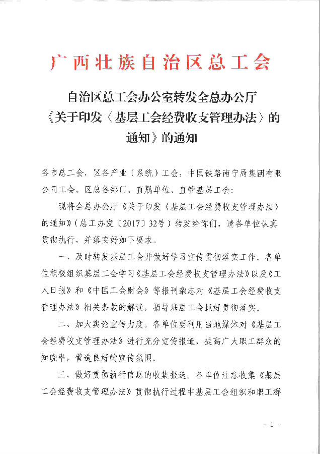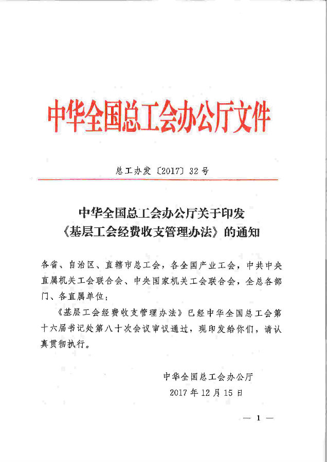 轉(zhuǎn)發(fā)全總辦公廳關(guān)于基層工會(huì)經(jīng)費(fèi)收支管理辦法的通知