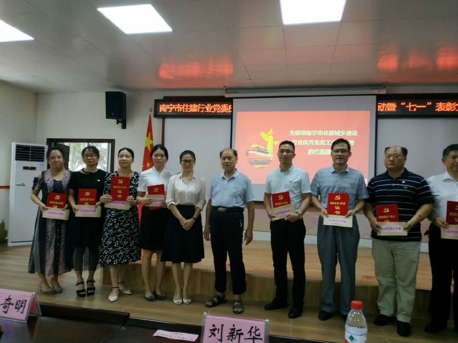 為總結(jié)經(jīng)驗(yàn)、樹立典型、表彰先進(jìn),激勵(lì)住建行業(yè)黨組織和全體黨員在推動(dòng)南寧市創(chuàng)造文明城市建設(shè)中更好地發(fā)揮戰(zhàn)斗堡壘作用和先鋒模范作用,2020年7月1日,南寧市住建行業(yè)黨委隆重舉行“慶祝中國共產(chǎn)黨成立99周年黨日活動(dòng)暨七一表彰大會(huì)”。市住建行業(yè)下屬非公企業(yè)黨支部書記、優(yōu)秀黨員及優(yōu)秀黨務(wù)工作者參加。