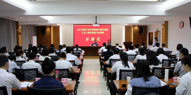 為強(qiáng)化理論武裝,把牢正確政治方向,提高工會(huì)干部的整體素質(zhì)水平,2021年3月29日—4月2日,南寧市住房和城鄉(xiāng)建設(shè)系統(tǒng)工會(huì)干部業(yè)務(wù)能力培訓(xùn)班在廣西干部學(xué)院隆重開(kāi)班,來(lái)自建設(shè)行業(yè)的20多家企業(yè)的工會(huì)主席和工會(huì)干部共60人參加了本次為期五天的培訓(xùn)。南寧市建設(shè)工會(huì)顧問(wèn)黃少古同志在開(kāi)班儀式上作重要講話。
