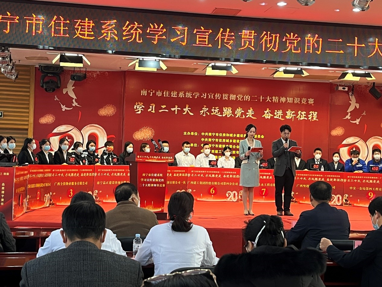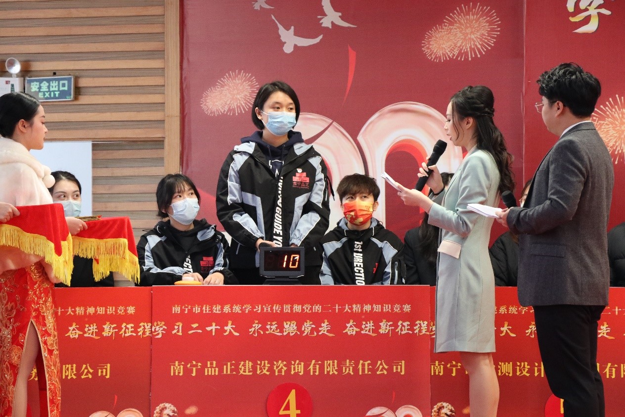 為深入宣傳貫徹黨的二十大精神,全面貫徹落實習近平總書記在大會期間的重要講話,深刻領悟“兩個確立”的決定性意義,增加“四個意識”、堅定“四個自信”、做到“兩個維護”,引導廣大干部群眾認真學習領悟黨的二十大提出的新思想、新部署、新要求,通過以賽促學,以賽促用,營造濃厚學習氛圍。2023年1月5日、6日,黨員何卉芷、入黨積極分子張藝梅、青年代表覃夏代表品正黨支部參加了由南寧市住建設行業(yè)黨委舉辦的“學習宣傳貫徹黨的二十大精神”知識競賽。取得了第三名的好成績。