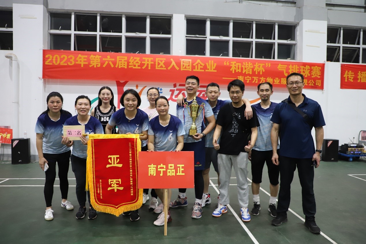 2023年4月10日-20日,第六屆經(jīng)開區(qū)入園企業(yè)氣排球比賽在金凱工業(yè)園職工之家隆重舉行,南寧品正建設(shè)咨詢有限責(zé)任公司組隊參加了本次比賽。經(jīng)過七天九場比賽,三十余家企業(yè)的激烈角逐,我公司的隊員們頑強拼搏,榮獲亞軍。