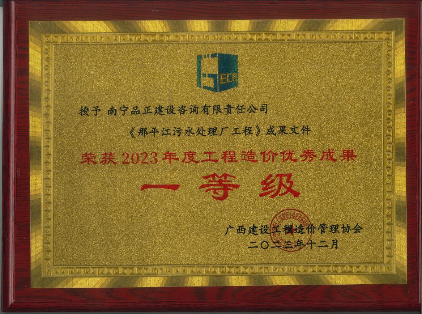 2023年12月18日,我公司“那平江污水處理廠工程全過程工程造價(jià)咨詢成果”獲得2023年度廣西建設(shè)工程優(yōu)秀造價(jià)成果一等獎(jiǎng)。
